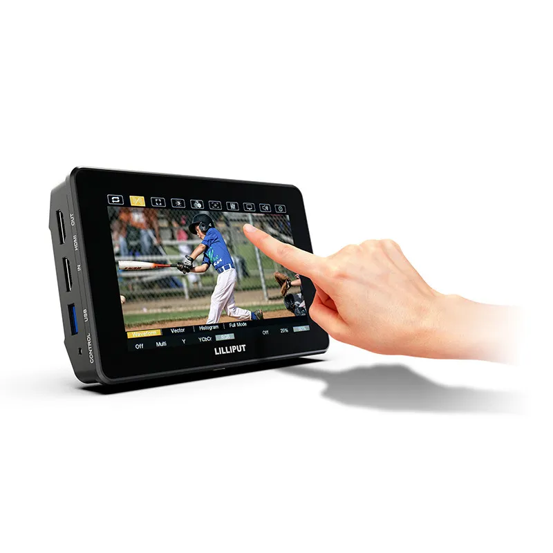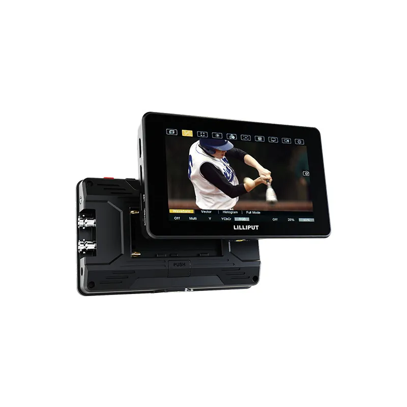Отслеживайте видео в формате UHD 4K с помощью встроенного в камеру сенсорного монитора HT5S 5,5"со сверхвысокой яркостью 2000 кд/ м2 от Lilliput. HT5S оснащен дисплеем со сверхяркостью 2000 кд / м2 и контрастностью 1000: 1, что упрощает просмотр кадра даже на открытом воздухе. Этот ЖК-монитор с разрешением 1920 x 1080 имеет входы и выходы 3G-SDI и HDMI, загрузку 3D LUT через USB-порт и поддержку ввода изображений HDR с возможностью отображения широкого динамического диапазона, такого как HLG или ST2084-300/1000/10000. Поддерживает видео до UHD 4K60 через HDMI и до 1080p60 через 3G-SD8.