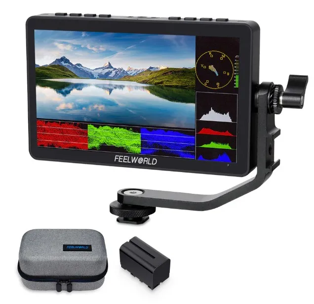Накамерный монитор 6" Feelworld F5 Pro V4 с аккумулятором F750 - это четвертая версия популярного монитора F5 Pro.Диагональ увеличена до 6" экраном способен сделать съёмку более комфортной и продуктивной. Full HD IPS дисплей с разрешением 1920х1080 pi поможет более тщательно отслеживать фокус и настройки цвета. Устройство может быть подключено к более крупному экрану и транслировать видео в формате 4К.
