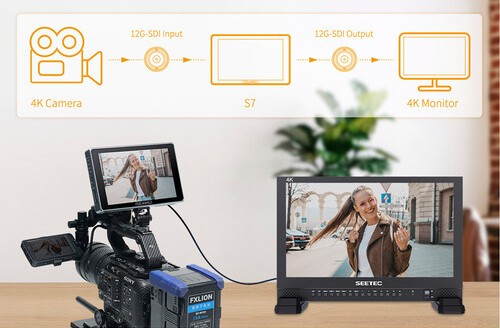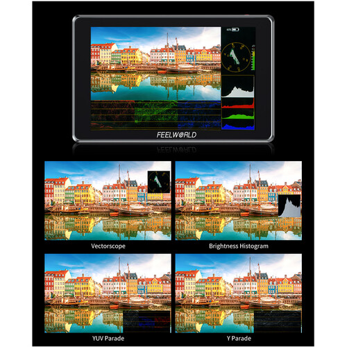 Контролируйте сигналы 4K HDR с высокой чёткостью прямо на площадке с помощью компактного монитора FeelWorld S7 7". Этот сенсорный полевой монитор с прочным алюминиевым корпусом оснащён входами и выходами 12G-SDI и HDMI 2.0, что позволяет просматривать 4K-сигнал без необходимости понижения разрешения. ЖК-панель имеет разрешение 1920 × 1200, контраст 1200:1 и яркость 1600 кд/м², обеспечивая чёткое изображение даже под прямыми солнечными лучами.