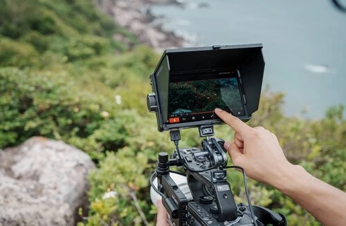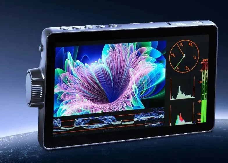 7-дюймовый IPS-дисплей с разрешением 1920 × 1080 и яркостью 2800 кд/м² остаётся чётким даже при прямом солнечном свете. Один из самых ярких в сегменте компактных мониторов. Изображение не выцветает, углы обзора широкие, цвета стабильные. В комплекте быстросъёмный солнцезащитный козырёк, дополнительно снижающий блики.