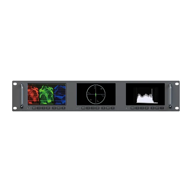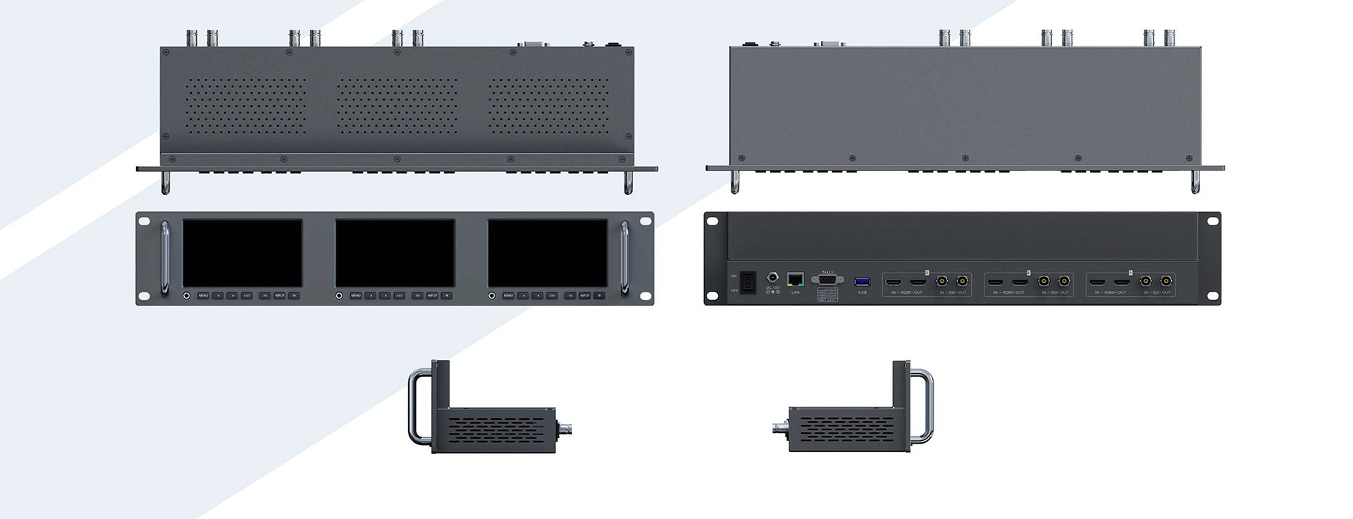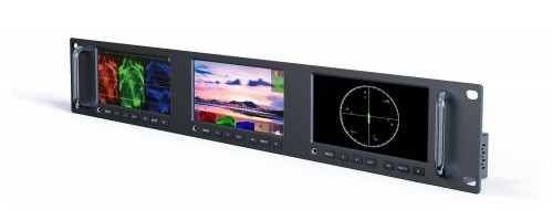 Монитор Lilliput RM-503S оснащен тремя 5-дюймовыми LED-экранами с яркостью 450 кд/м² и разрешением Full HD 1920 x 1080. Металлический корпус размером 2 RU имеет две встроенные ручки для удобства монтажа и демонтажа с видеостены или мобильной трансляционной системы. Благодаря интегрированной поддержке 3D LUT и HDR, RM-503S идеально подходит для вещания, постпродакшена и прямых трансляций.