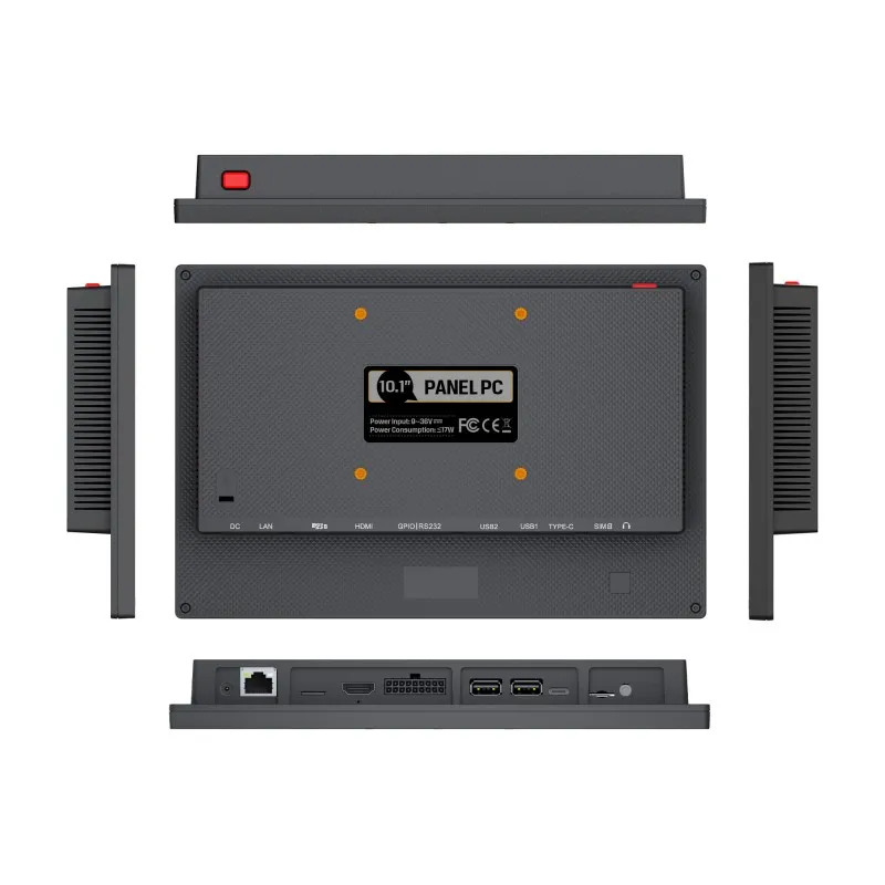 Это панельный ПК на базе ОС Android 10 с емкостной сенсорной функцией 10,1 дюйма и светодиодным экраном с разрешением 1000 нит, который поставляется с богатыми интерфейсами и корпусом из АБС-пластика.