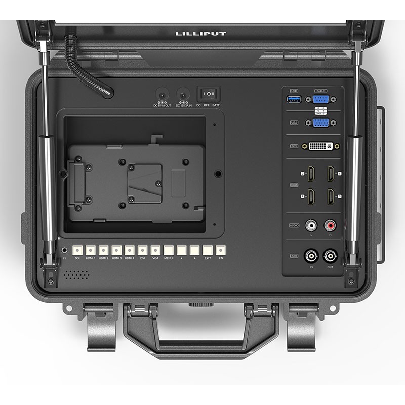 Созданный для путешествий и работы на местности, монитор Lilliput 12,5-дюймовый в жестком корпусе представляет собой портативный автономный монитор с множеством функций, подходящих для трансляции продукции. ЖК-панель монитора размером 3840 x 2160 пикселей заключена в защитный футляр и встроена в крышку, а V-образная батарейная панель Mini и входы / выходы расположены в основании, а все соединения защищены от попадания пыли, воды и повреждений при транспортировке и хранении.