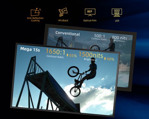 - Высокая яркость 1500 кд/м²: Яркий экран обеспечивает отличную видимость даже при дневном свете, что особенно важно при съёмке на улице.