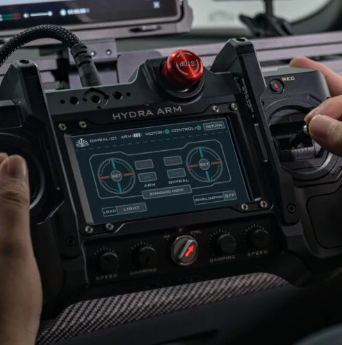 Включённый контроллер подключается проводом, гарантируя надёжную связь с системой. Он предоставляет доступ к настройкам осей наклона и панорамирования: скорость, демпфирование и ограничение амплитуды движения для каждой оси. Пользовательские профили позволяют выбрать удобную конфигурацию управления. Pro Mode расширяет возможности, обеспечивая одновременное управление Hydra Arm Mini и стабилизатором RS 2/RS 3 Pro через один контроллер.