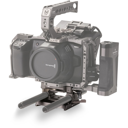 - Установка: Перед использованием убедитесь, что базовая площадка правильно установлена на вашей клетке Tiltaing для камер BMPCC 4K/6K и Z Cam. Обратите внимание на интегрированные зажимы для 15mm LWS-направляющих и удостоверьтесь, что они надежно фиксируют оборудование.