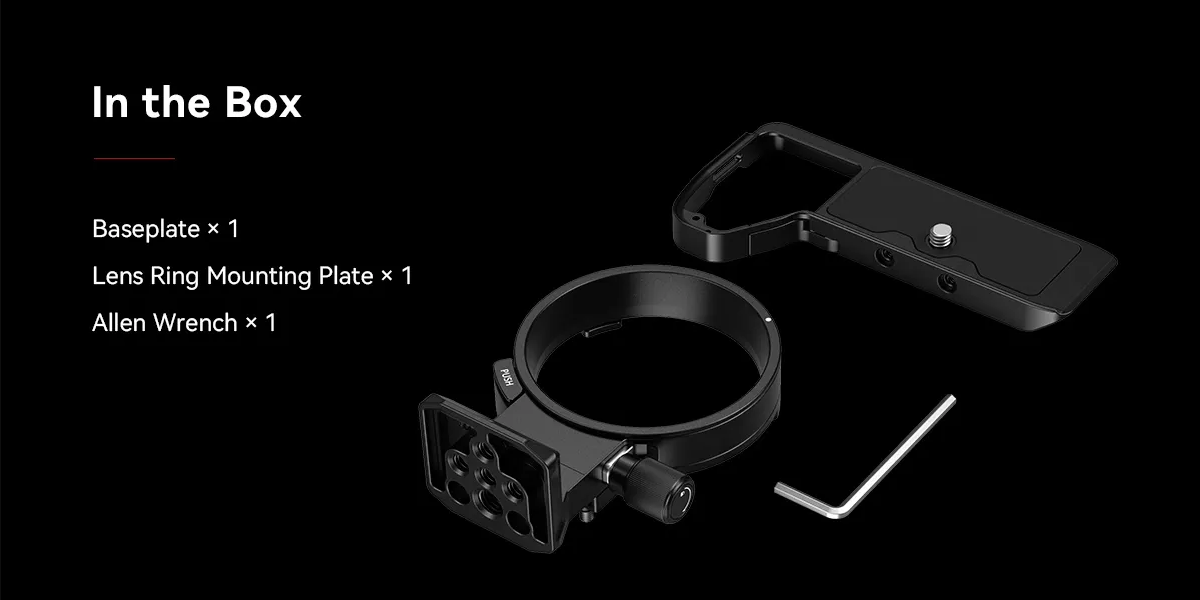 - 1 x Площадка крепления для объектива для вертикальной и горизонтальной съемки
