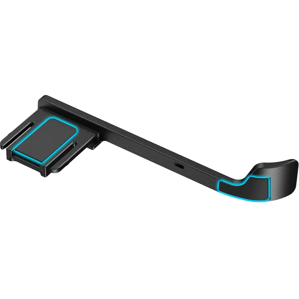 Накладка крепится непосредственно к горячему башмаку камеры и имеет специальную текстурированную поверхность для большого пальца. Это обеспечивает надёжный, нескользящий захват, значительно повышая контроль над камерой и снижая риск случайного соскальзывания руки во время съёмки.