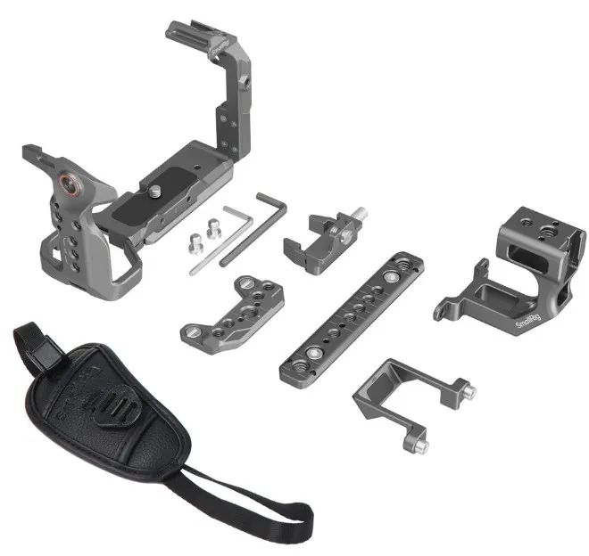 Клетка устанавливается на камеру с помощью винтов снизу и по бокам, что обеспечивает максимальную устойчивость. Встроенная планка NATO совместима с оригинальной верхней ручкой XLR, а удлинитель позволяет использовать полноценную D-образную ручку.