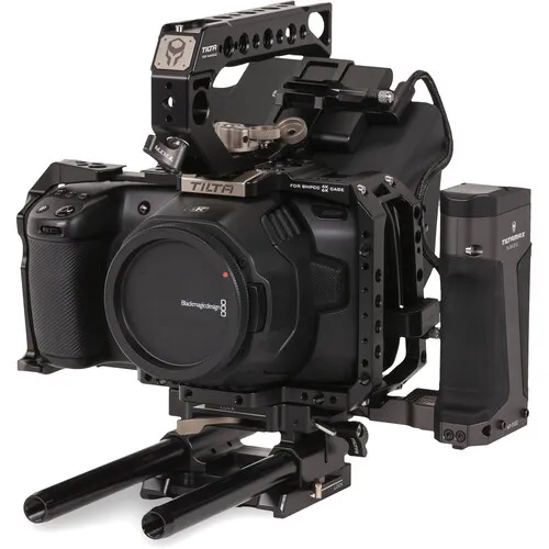 Функциональный комплект от Tilta для камеры BMPCC 6K Pro или G2 - это идеальное решение для профессиональных видеографов. Этот набор аксессуаров включает в себя клетку, базовую площадку с 15-миллиметровыми направляющими, верхнюю рукоятку, боковую ручку с управлением и множество других полезных элементов, которые сделают вашу съемку более эффективной и комфортной.
