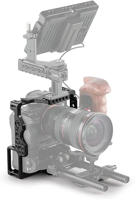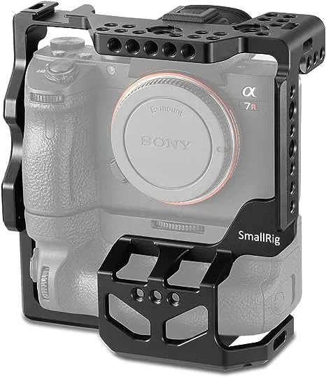 Клетка для камеры SmallRig 2176B для Sony A7RIII /A7M3 /A7III с вертикальной рукояткой VG-C3EM 2176 крепится к гнезду штатива камеры с помощью винта 1/4’-20 и второго фиксатора с правой стороны, предотвращающего скручивание и покачивание камеры. SmallRig 2176B - это инновационный аксессуар, который перевернет ваше представление о съемке. Он защищает всю поверхность камеры и в то же время не закрывает кнопки и дисплей камеры.