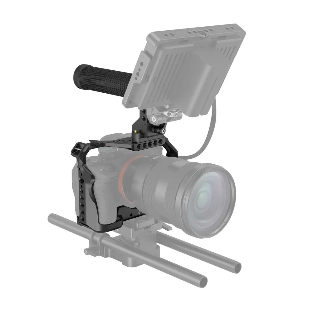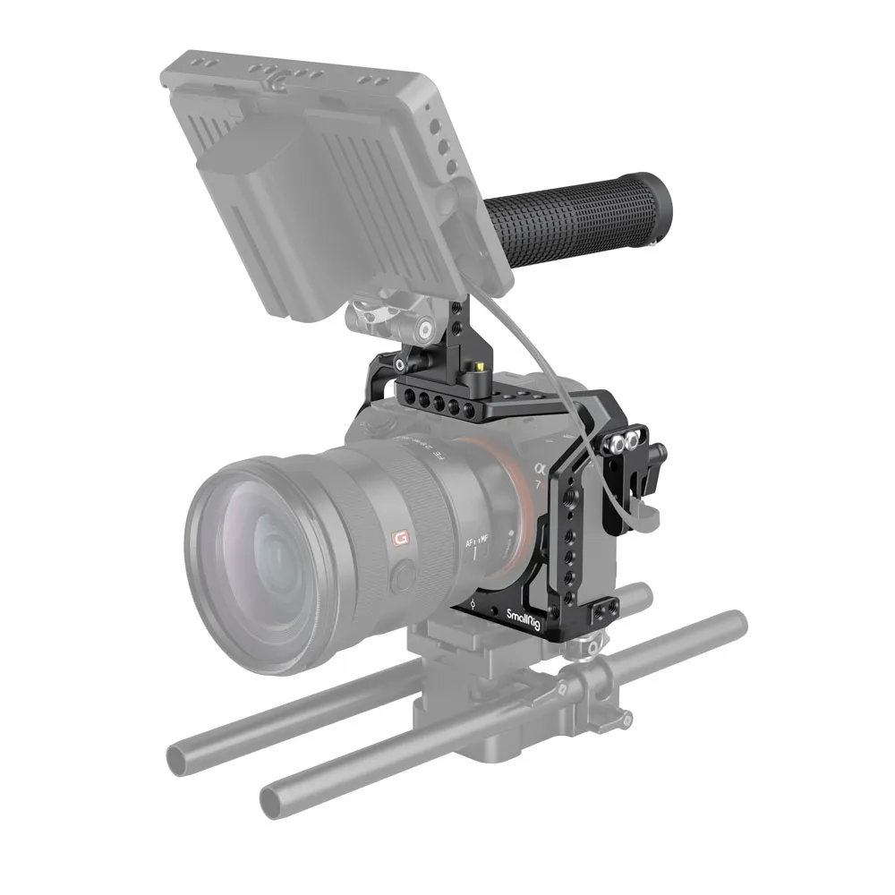 SMALLRIG 2096D обеспечивает отличную защиту и множество дополнительных вариантов крепления для камер. Это позволяет камере максимально раскрыть свой потенциал в соответствии с потребностями оператора во время съемки. Комплект SmallRig Cage Kit 2096 предназначен для Sony A7RIII /A7III. Подключение к камере происходит с помощью одного винта, что не мешает функциям самой камеры, а также добавляет защиту от скручивания.