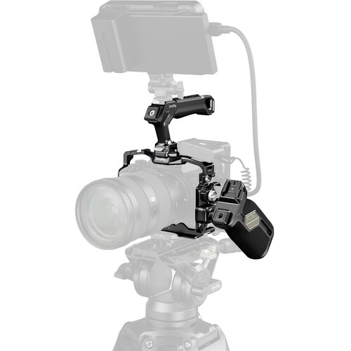 Откидная крышка отсека аккумулятора одновременно служит упором для мизинца — это улучшает хват при длительной съёмке. В комплекте идёт зажим для HDMI-кабеля, который предотвращает его случайное выдергивание и снижает нагрузку на разъём камеры. Для сборки и регулировки в основании клетки спрятан магнитный шестигранник, он всегда под рукой.