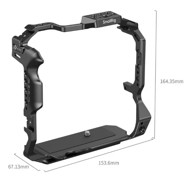 В клетке предусмотрено несколько отверстий для крепления ремешка или лямки, что особенно полезно при съёмке на ходу. А специальный отсек внизу корпуса хранит двухсторонний ключ, который всегда будет под рукой для подтяжки креплений. Изготовленная из высококачественного алюминиевого сплава, клетка сочетает небольшой вес с высокой жёсткостью. Это делает её идеальным решением как для студийной, так и для мобильной съёмки, где важны и надёжность, и эргономика.