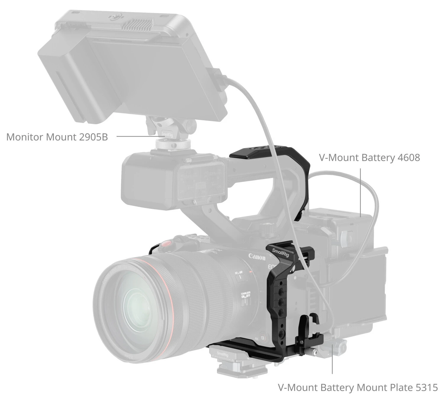 Комплектация клетки Smallrig 5657 Cage Kit для Canon EOS C50 с XLR Handle Extension