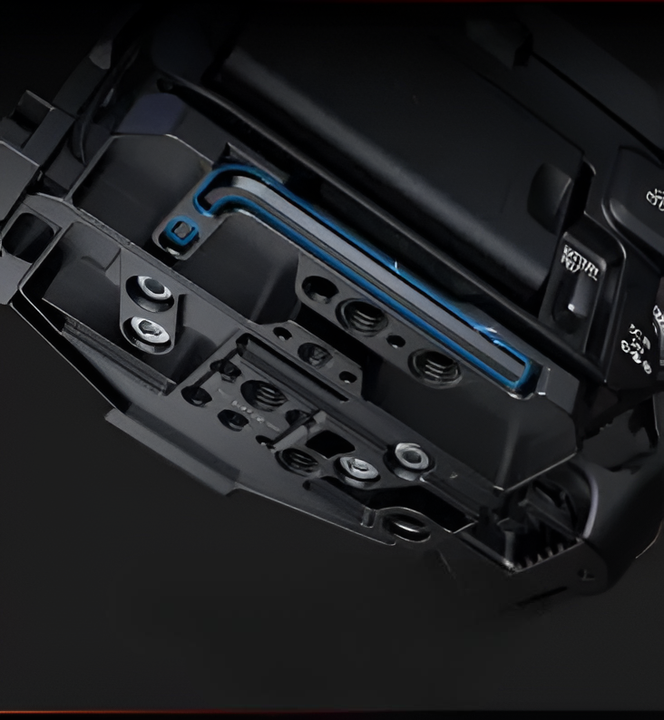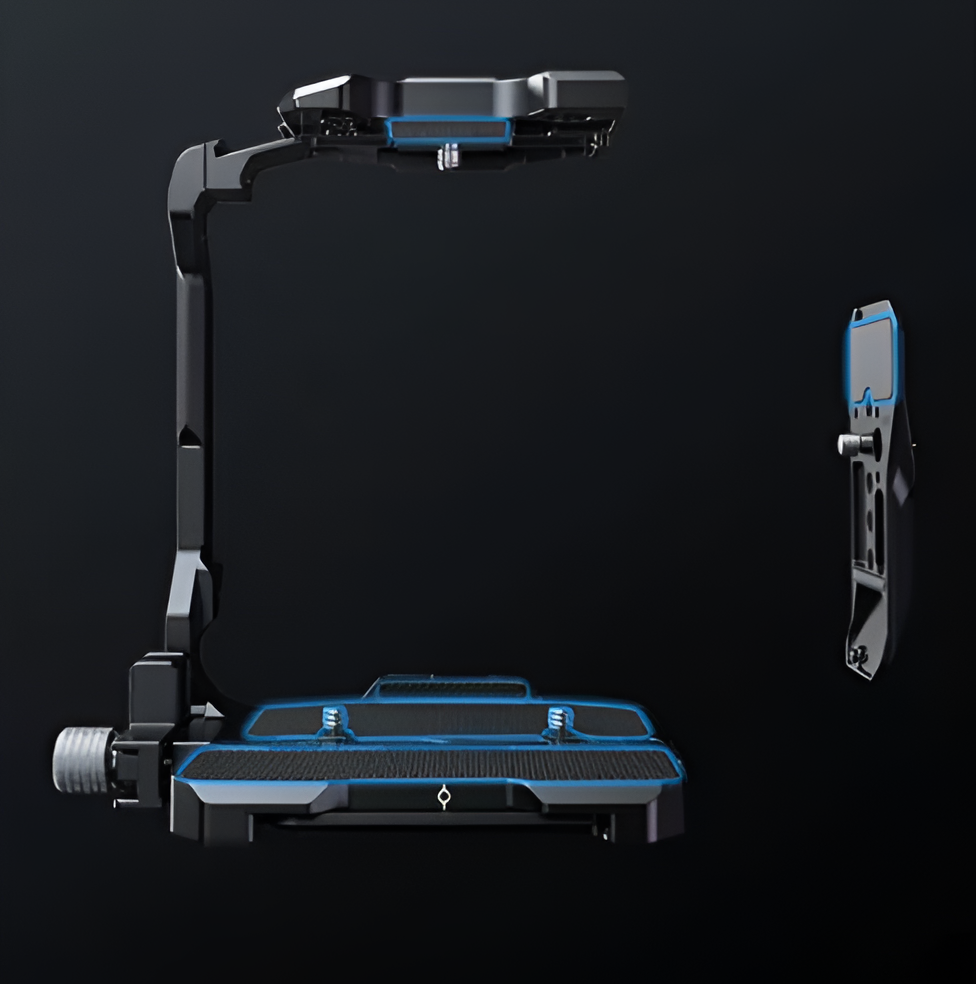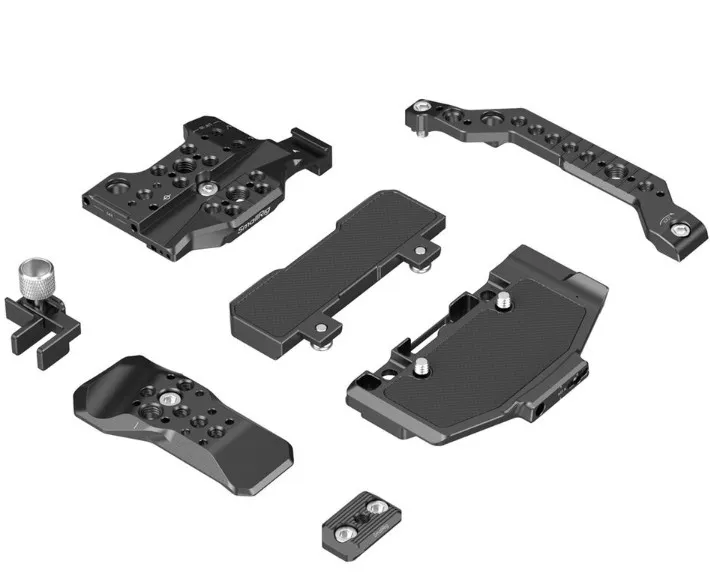 На все пластины интегрированы многочисленные точки крепления, включая резьбы 1/4"-20 и 3/8"-16, отверстия с точной фиксацией (locating holes) стандарта ARRI, крепления Arri Rosette (H21 NATO rails), холодные башмаки и QD-сокеты[citation:2][citation:5]. Это позволяет крепить боковые ручки, мэджик армы, крепления для мониторов и клипсы для фоллоу-фокуса. В комплект также входит зажим для HDMI-кабеля, чтобы он не расшатывал порт.