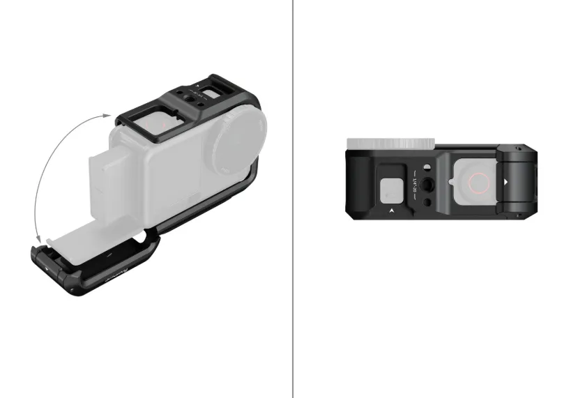Клетка оснащена боковыми магнитными креплениями, совместимыми как с адаптерами DJI, так и с аксессуарами SmallRig, что позволяет быстро менять ориентацию камеры с горизонтальной на вертикальную. Верхний холодный башмак предназначен для установки микрофона DJI Mic 2, осветителей или других аксессуаров, расширяя творческие возможности.