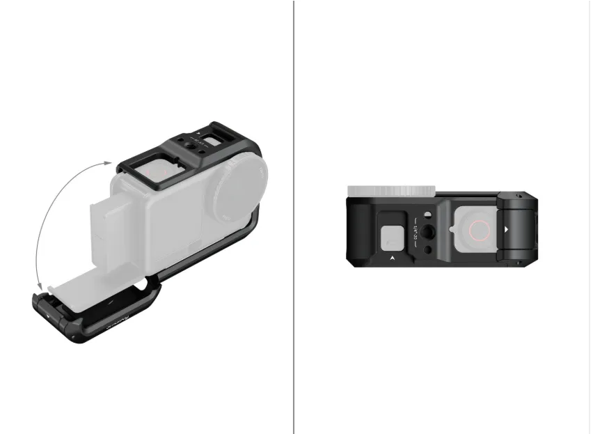 Клетка оснащена боковыми магнитными креплениями, совместимыми с оригинальным адаптером DJI Dual-Direction. Это позволяет быстро устанавливать камеру в горизонтальной или вертикальной ориентации. На верхней части расположен стандартный холодный башмак для монтажа таких аксессуаров, как микрофон DJI Mic 2 или осветитель SmallRig Video Light.