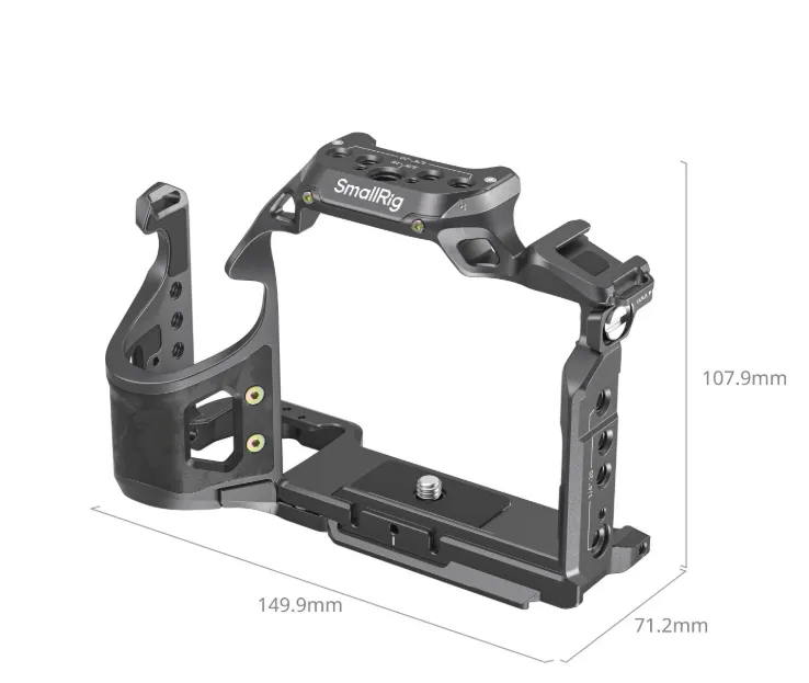 Клетка плотно облегает камеру, фиксируясь по трём точкам для полного устранения люфта. Эта конструкция гарантирует абсолютную жёсткость, что критично для плавной видеосъёмки и чёткой фотографии. При этом сохраняется полный доступ ко всем кнопкам, дискам, разъёмам и откидному экрану камеры.