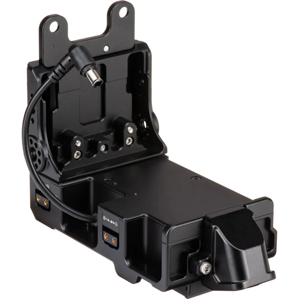 Распределительная коробка с креплением под V-mount (или опционально под Gold mount) устанавливается на заднюю часть клетки и обеспечивает питание камеры и аксессуаров. Она выдаёт два выхода 2-pin LEMO и три D-Tap, а также поддерживает внешний модуль питания через 6-контактный разъём. Это позволяет одновременно запитывать монитор, микрофон, осветитель и другие устройства от одного аккумулятора V-mount.