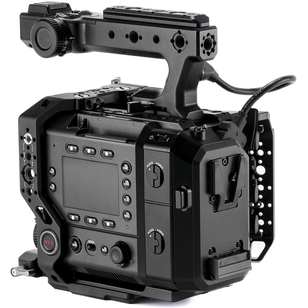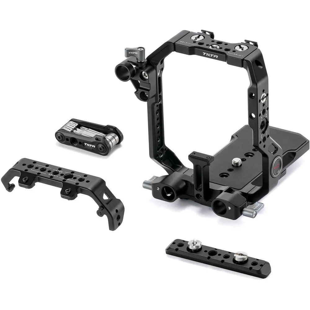 По всему периметру клетки расположены многочисленные резьбовые отверстия: 1/4"-20 и 3/8"-16 с антипроскальзывающими фиксаторами. Это даёт свободу при подключении мэджик армов, микрофонов, SSD-рекордеров, осветителей и других устройств. Нижняя пластина совместима как с 15-мм LWS, так и с адаптерами под 19-мм направляющие, а также с быстросъёмными площадками Tilta.
