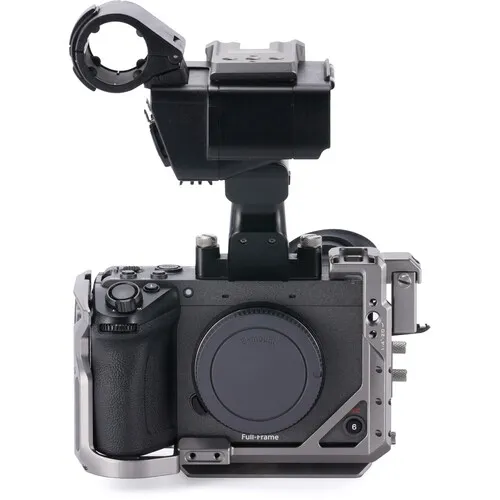 Клетка повторяет форму FX2 и не мешает работе с камерой: все отсеки, слоты и органы управления остаются открытыми. В конструкции предусмотрен встроенный кольцевой хват для удобной съёмки от руки и съёмная базовая площадка, которую можно установить как в горизонтальном, так и в вертикальном положении. На ней интегрирована быстросъёмная площадка стандарта Arca/DJI — это позволяет быстро перекреплять камеру на голову штатива, рельсы или гиростабилизатор. Для монтажа аксессуаров предусмотрены NATO-рельс с фиксатором, «холодный башмак» и множество резьбовых отверстий 1/4 и 3/8 с антипрокручивающими упорами.