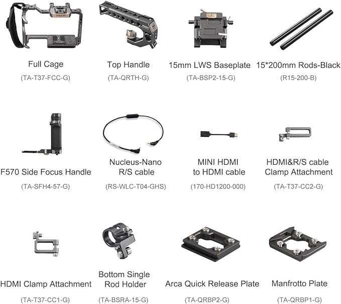 - Многофункциональность: Комплект включает в себя различные аксессуары, которые значительно расширяют возможности вашей камеры. В него входят быстросъемная верхняя ручка, пластины Arca и Manfrotto, пластина LWS 15 мм для монтажа аксессуаров и многое другое.