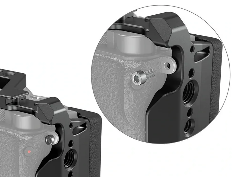 - Аксессуар надежно фиксирует камеру с помощью одного винта 1/4"-20 и одного винта M2.5 сбоку, предотвращая возможный поворот или смещение.