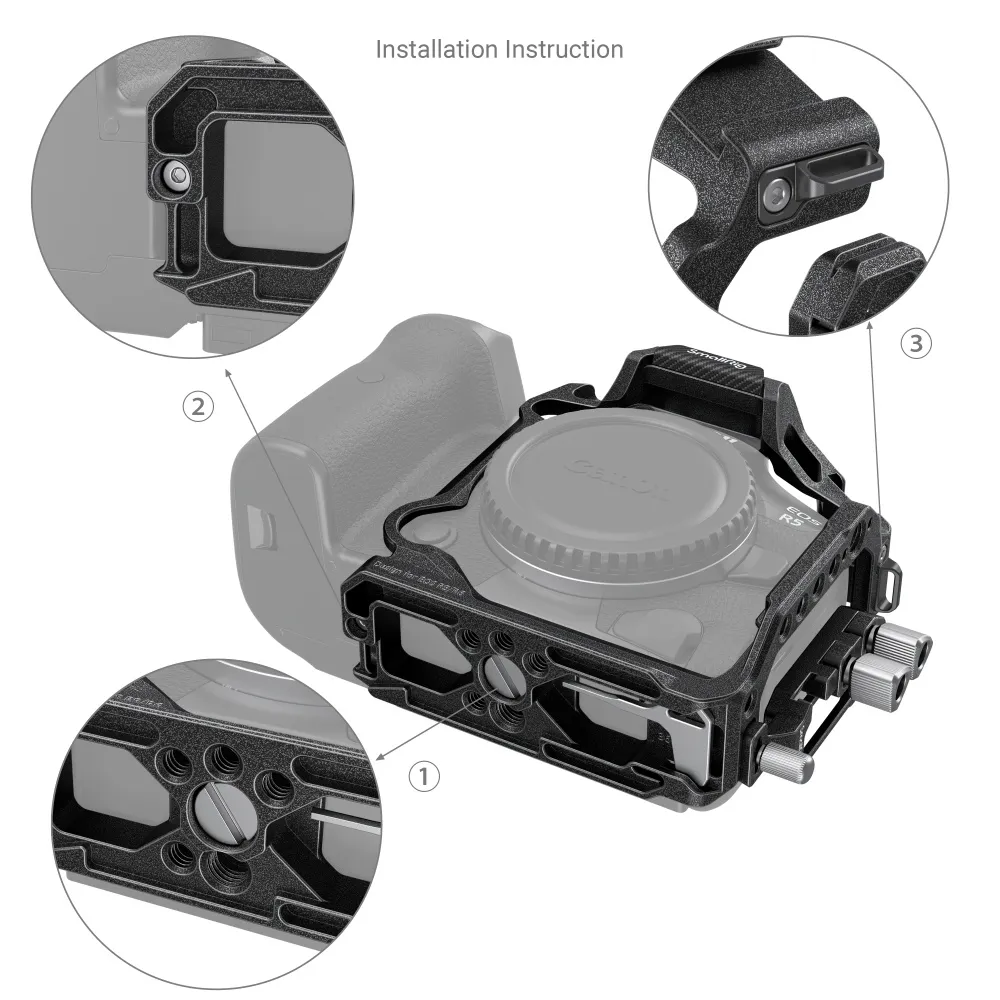 Эта клетка идеально подходит для профессиональных видеосъемок, предоставляя широкие возможности монтажа и защиты вашей камеры Canon EOS R5 C, R5 или R6.