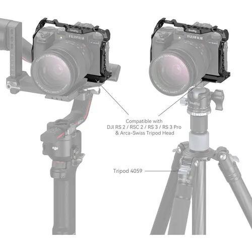 - Поддержка на штативе и гимбале: Дно клетки оснащено формой Arca-type для удобного монтажа на штативы и определенные гимбалы, обеспечивая стабильность во время съемки на месте или в движении.
