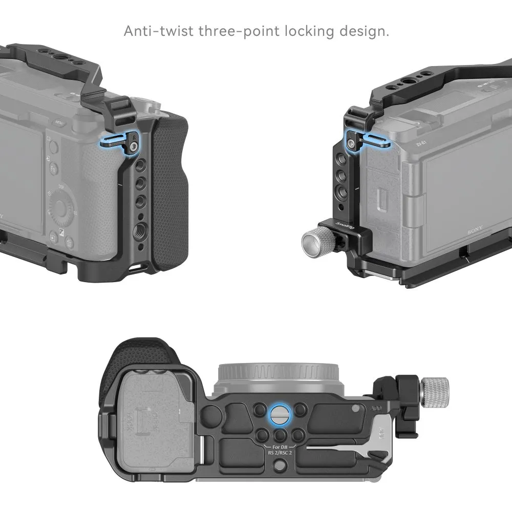 - Установка: Закрепите SmallRig 4257 на вашей камере Sony ZV-E1, используя встроенный в комплект 1/4"-20 винт и адаптер с блокировкой. Убедитесь, что клетка надежно фиксирована для предотвращения любых нежелательных движений во время съемки.