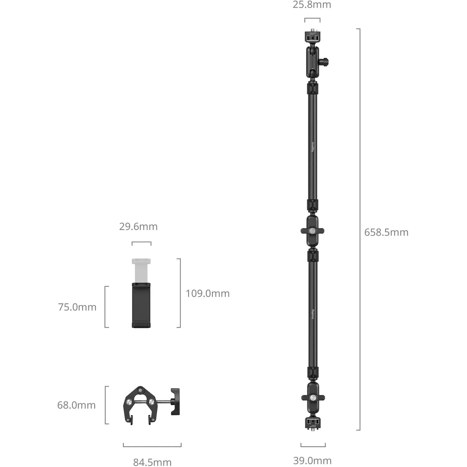 - Мэджик арм с крабообразным зажимом и зажимом для смартфона