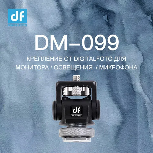 DM-099 от DigitalFoto - крепление, которое устанавливается в горячий башмак вашей камеры и позволяет устанавливать девайс с монтажным отверстием с резьбой 1/4"-20. Это компактное устройство имеет угол наклона более 180° и выдерживает нагрузку до 4,4 фунтов. Угол наклона можно зафиксировать с помощью прилагаемого шестигранного ключа M3.