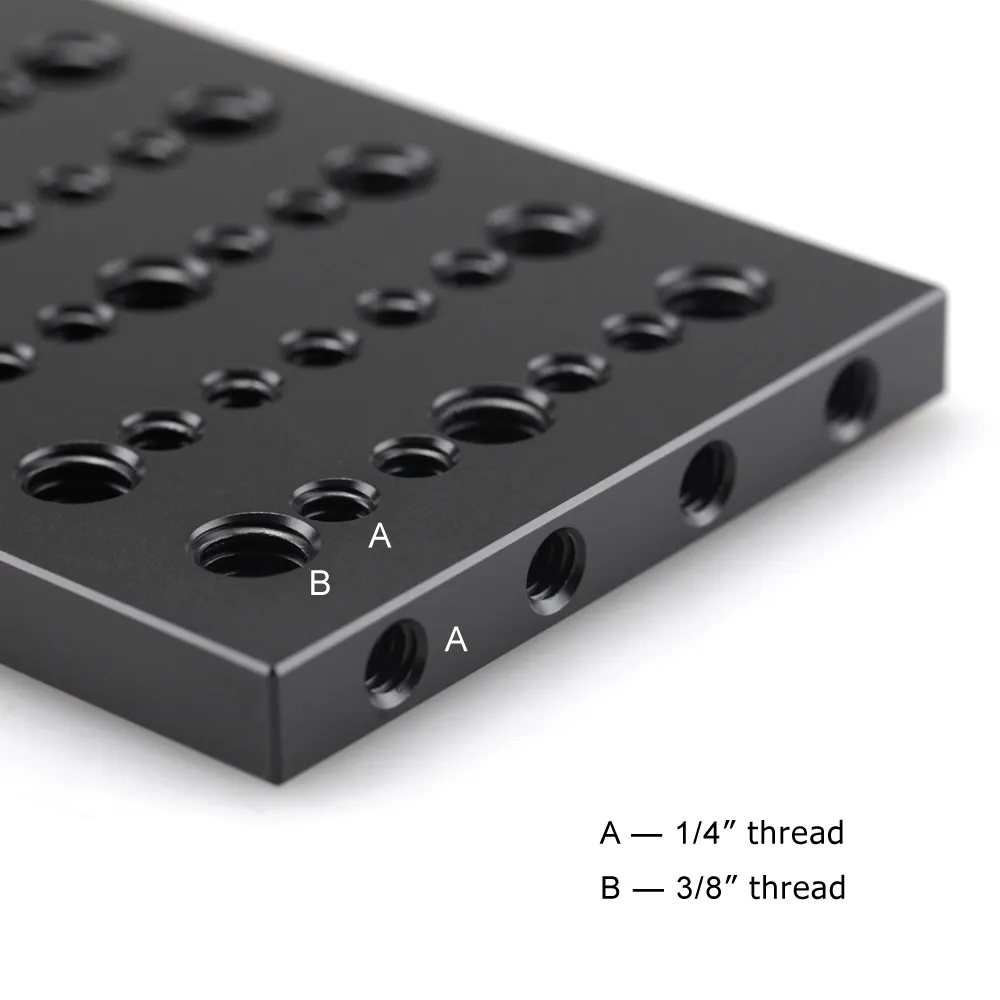 Площадка для крепления аксессуаров SmallRig Cheese Plate, разработана с учетом широкой совместимости. Она совместима с большинством аксессуаров и предметов, которые имеют возможность крепления резьбовых отверстий 1/4'' и 3/8 ''. Вы можете закрепить на ней держатели, направляющие, крепления для аккумуляторов, другие необходимые аксессуары и навесное оборудование для вашей камеры.