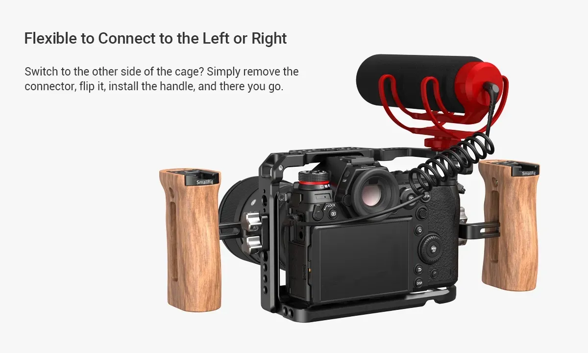 SmallRig 2093 это деревянная боковая ручка, обеспечивающая комфортный и надежный хват вашей камеры. Конструкция предоставляет удобство и стабильность при съемке. Сверху ручки имеется крепление холодный башмак для микрофона и освещения, а также резьбовыми отверстиями 1/4 “ и 3/8 “ для крепления иных аксессуаров.