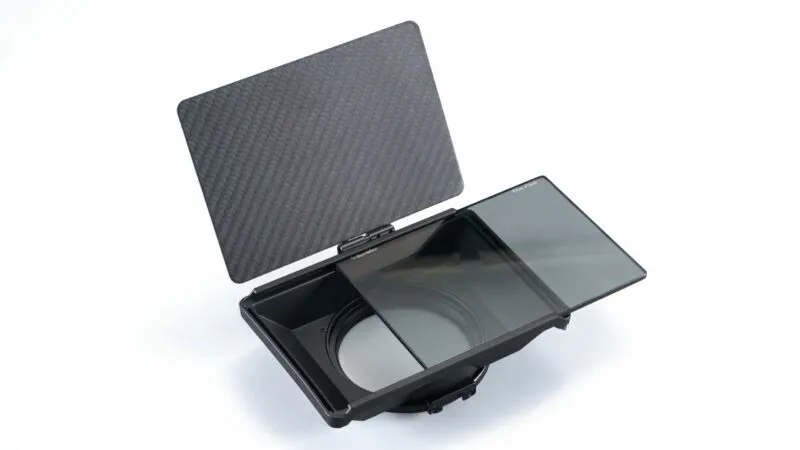 - Функциональность: Регулируемая верхняя шторка предоставляет защиту от лишних бликов при съемке с ярким освещением. Дополнительную гибкость представляют слоты для круглых фильтров и фильтров 4х5.65.