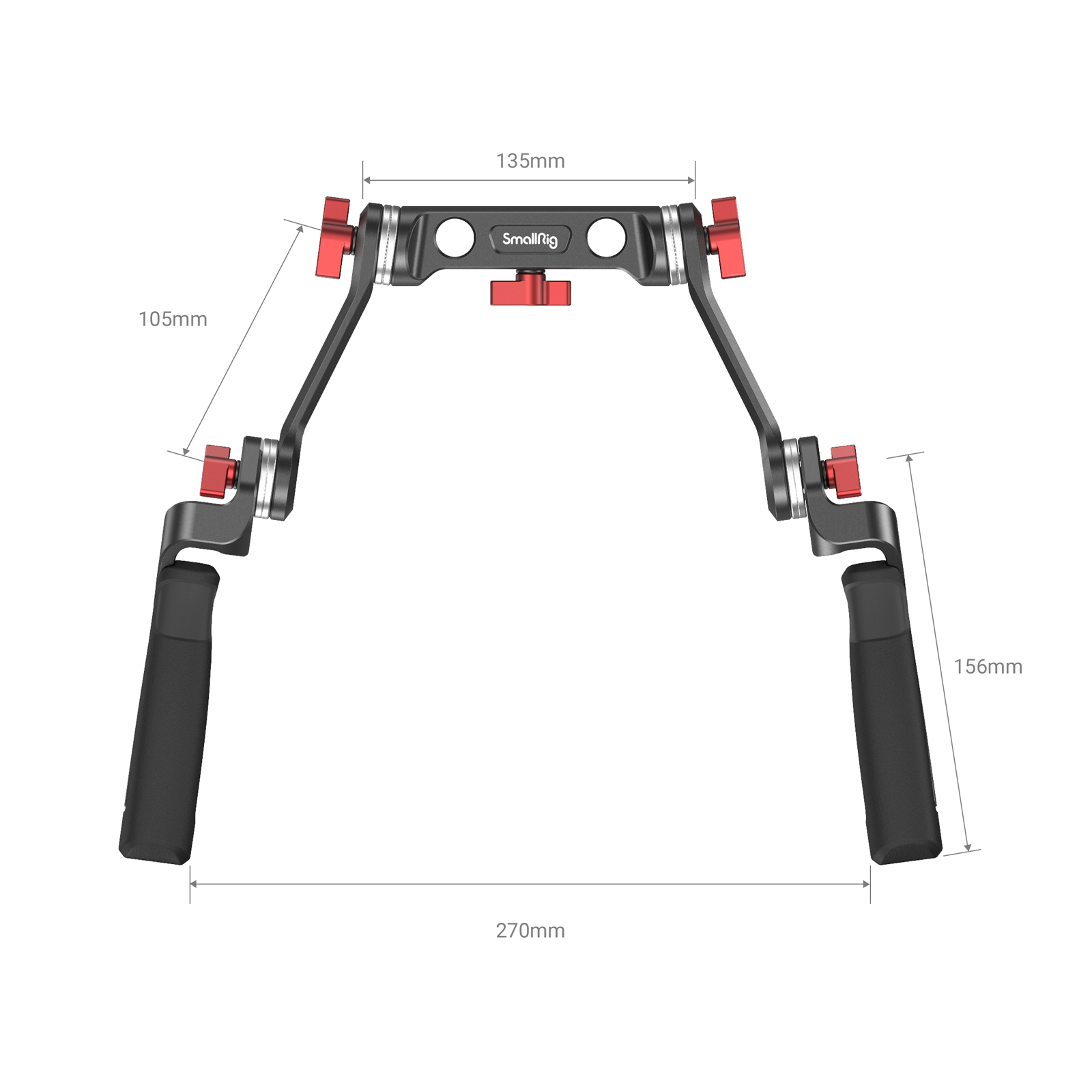 Интегрированная конструкция центрального крепления и кронштейнов дополнительно усовершенствована. Она предоставляет отверстия, совместимые с винтами диаметром 1/4" и 3/8", что позволяет без труда устанавливать разнообразное съемочное оборудование, подходящее к этим стандартам. Таким образом, данный двуручный захват становится универсальным инструментом не только для улучшения условий труда оператора, но и для обеспечения высокого качества видеосъемки.