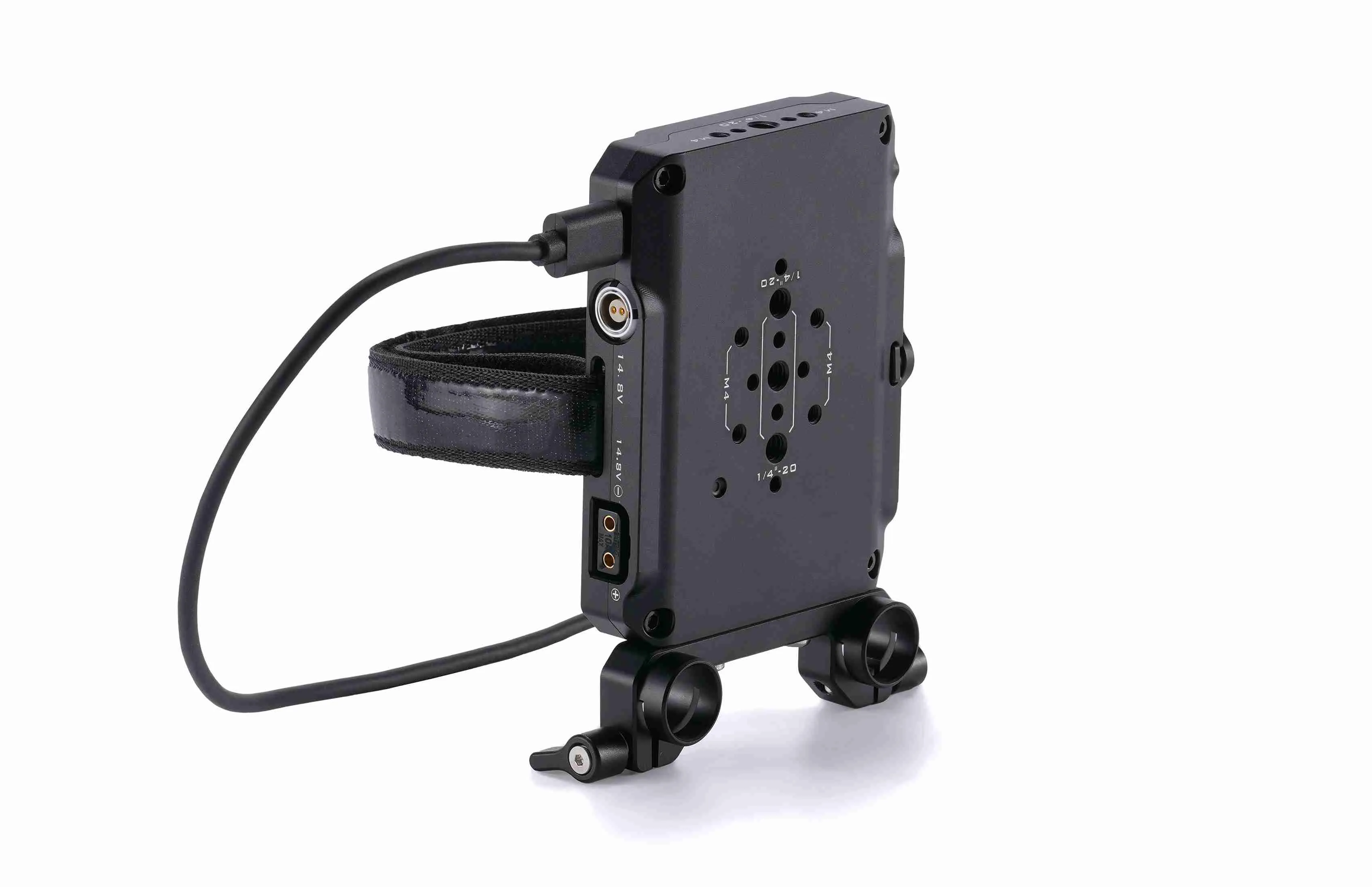 Площадка оснащена зажимом для штанг 15 мм LWS для быстрой установки на базовую площадку или риг. Для гибкости монтажа предусмотрены несколько резьбовых отверстий: 1/4"-20 и M4. С обеих сторон есть пазы для фиксирующего ремня.