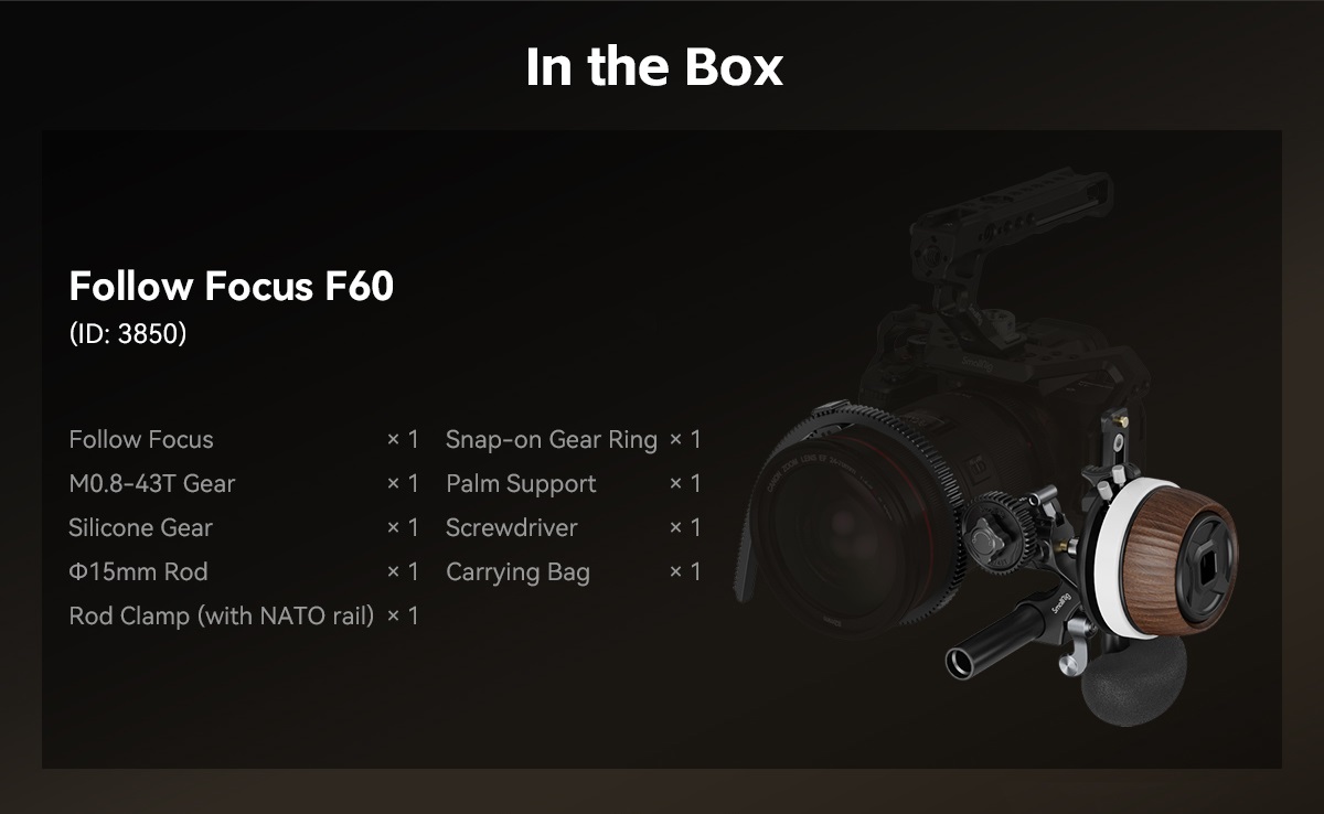 Ищете, где купить SmallRig 3850 Фоллоу фокус F60 по выгодной цене? В интернет-магазине Фотофрог — актуальное наличие (или под заказ), официальная гарантия, самовывоз в Москве и быстрая доставка по России и СНГ. Поможем подобрать решение под ваши задачи съёмки и расскажем про совместимость с вашим набором.