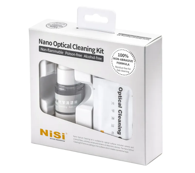 NiSi Nano Optical Cleaning Kit — это комплект для безопасной и эффективной очистки всех фильтров и объективов. В его состав входит специальная очищающая жидкость, которая не оставляет следов и образует защитное покрытие на поверхности. Жидкость можно наносить непосредственно на фильтр, объектив или экран, либо на ткань перед протиранием. Этот набор идеально подходит для профессионалов и любителей. С его помощью можно легко и быстро очистить объективы, фильтры и экраны от пыли, отпечатков пальцев и других загрязнений.