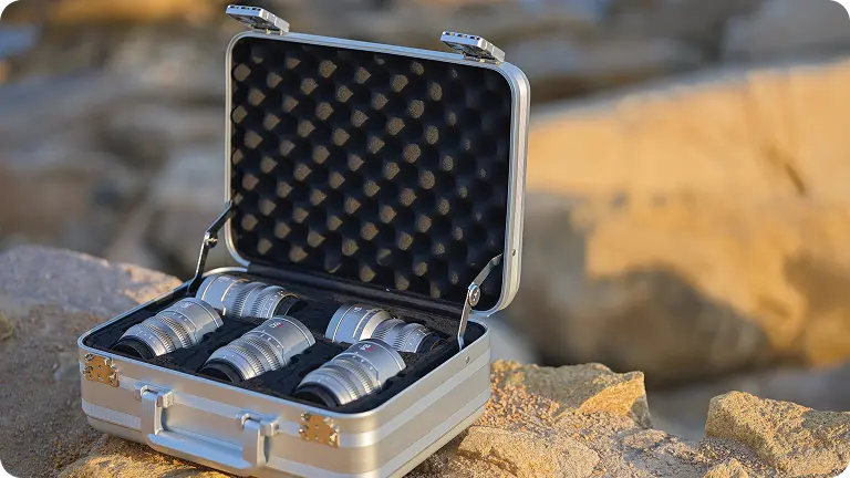 Пять классических фокусных расстояний — 16 мм, 24 мм, 35 мм, 50 мм и 85 мм — охватывают диапазон от широкого угла до среднего телевика. Каждое фокусное расстояние обладает своей уникальной эстетикой композиции. Независимо от типа проекта, AURA предлагает идеальный выбор фокусного расстояния.