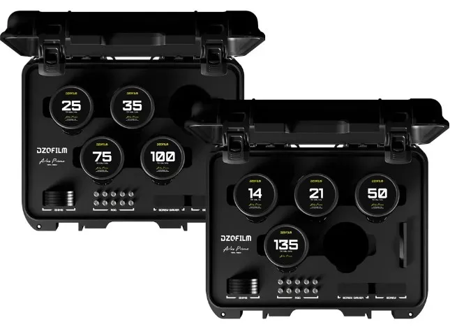 —Комплект объективов DZOFilm Arles 14/21/25/35/50/75/100/135 мм FF/VV Prime Cine Lens