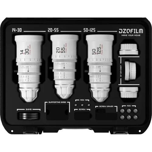 Набор объективов DZOFilm Pictor 14-30/50-125/20-55 представляет собой уникальный комплект, включающий в себя три кинематографических объектива из серии Pictor Zoom: 14-30mm, 20-55mm и 50-125mm. Этот набор обеспечивает возможность съемки разнообразных сцен и является идеальным выбором для творческих проектов.