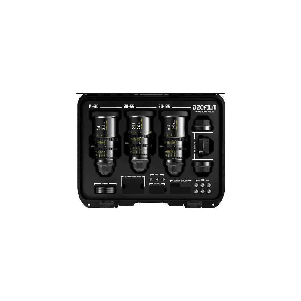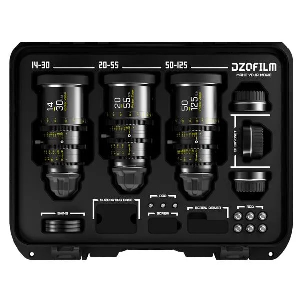 Набор объективов DZOFilm Pictor 14-30/50-125/20-55 представляет собой уникальный комплект, включающий в себя три кинематографических объектива из серии Pictor Zoom: 14-30mm, 20-55mm и 50-125mm. Этот набор обеспечивает возможность съемки разнообразных сцен и является идеальным выбором для творческих проектов.