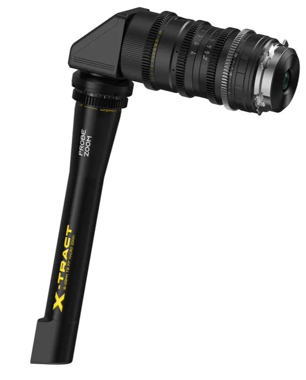 Перископный макрообъектив DZOFilm X-Tract 18-28mm T8 FF Probe Zoom ARRI PL 360° предлагает уникальные возможности для съемки крупным планом. Этот компактный зондовый объектив имеет длину всего 41,5 см и диаметр передней части менее 3 см, что делает его идеальным для работы в ограниченном пространстве. Он оснащен относительно быстрой максимальной диафрагмой T8, максимальным увеличением 2,1:1 и минимальным фокусным расстоянием 6 мм. Версия с углом обзора 360° обеспечивает перископный обзор.