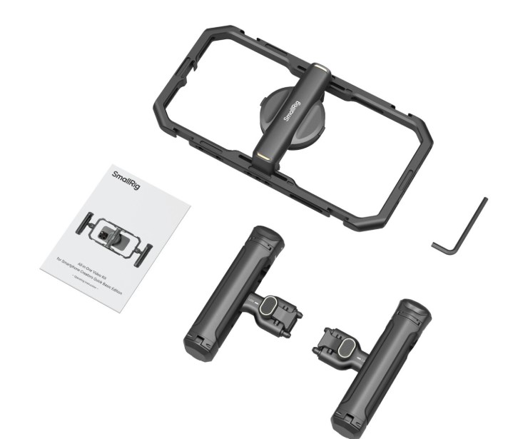 Разработанный для смартфонов шириной от 2,5 до 3,5 дюймов, комплект All-in-One Video Kit for Smartphone Creators предлагает компактное и эффективное решение для профессиональной видеосъёмки на смартфон. В него входят универсальная быстросъёмная клетка для смартфона и боковая ручка с быстросъёмным креплением, оснащённая беспроводным пультом управления на частоте 2,4 ГГц с дальностью действия до 10 метров.