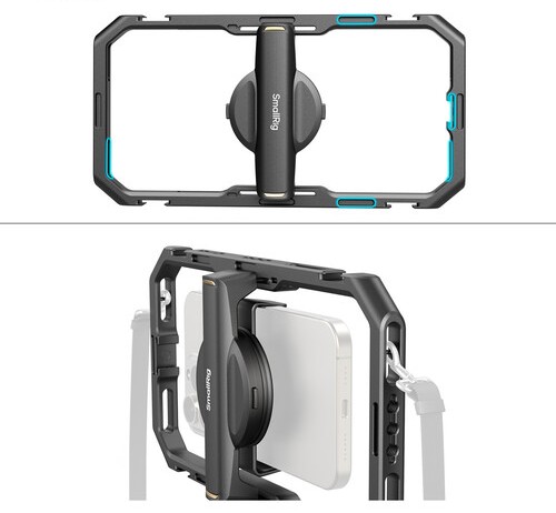 Клетка оснащена несколькими резьбами 1/4"-20 и «холодными башмачными шинами», что позволяет устанавливать широкий спектр аксессуаров: микрофоны, свет, мониторы и другие. Поддерживается установка магнитных фильтров 67 мм, а также имеется отверстие для наплечного ремня и слот для крепления на док-станцию. Фиксация смартфона осуществляется либо через MagSafe крепление, либо с помощью зажима — обеспечивая надёжную фиксацию.