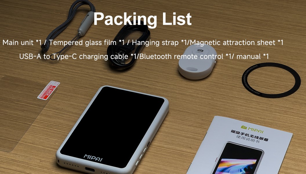 Mipai One — это компактный и мощный монитор для смартфонов с функцией удаленного управления. Он обеспечивает удобный мониторинг при съёмке на основную камеру и идеально подходит для селфи, стриминга, видеоблогинга и других творческих задач. Благодаря высокой яркости экрана (500 нит), длительному времени работы от батареи и широкой совместимости с устройствами вы сможете создавать контент в любых условиях.