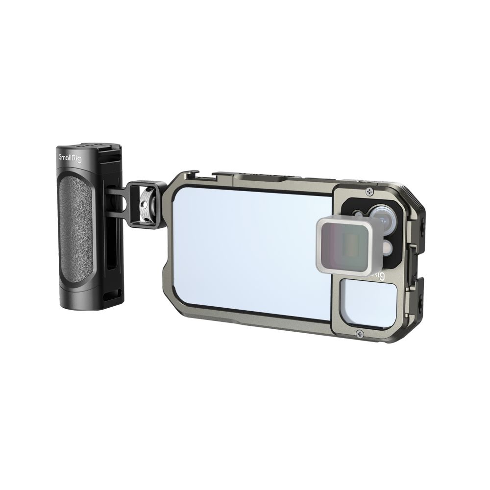 Клетка с ручкой SmallRig 3735 - это надежный и удобный комплект для съемки, который поможет вам создавать потрясающие видео с вашего iPhone 13. Он включает в себя клетку и боковую рукоятку, что позволяет повысить плавность видео и обеспечить максимальный комфорт для оператора.