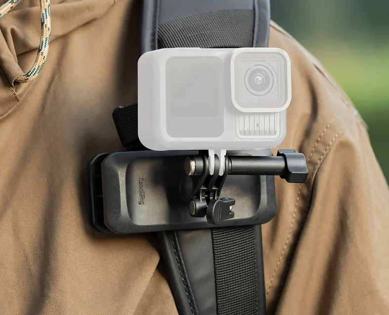 Компактный клип-крепление для экшн-камер, которое фиксируется на лямке рюкзака для съёмки без участия рук. Интегрированная шаровая голова обеспечивает быструю настройку ракурса, а надёжный зажим удерживает камеру даже при активной тряске во время походов или велопрогулок.